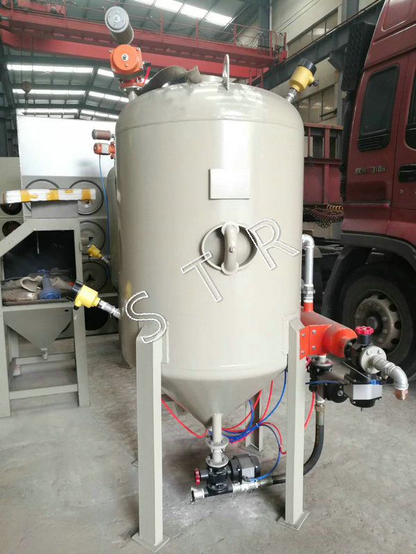 噴砂機采用雙缸體結構,因此,可達到連續作業的要求,噴砂工作可連續工作,不需一般