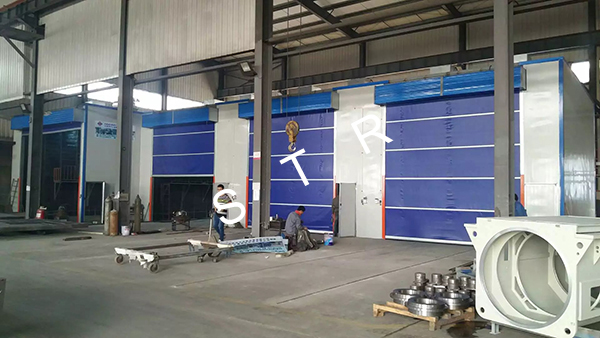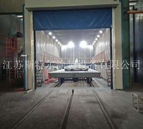 2.3 臺車進入噴砂房內,關閉大門;