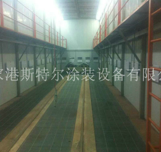 根據客戶要求及工件尺寸,房體工作尺寸設計為18x6x6.5m。本噴砂房體選取100mm方管做基本上框架的,內壁選取50方管做內壁撐起、,內壁鋪2mm剛板及3mm橡膠材料板,外表壁墻選取50mm厚彩鋼瓦壓型板夾心板造成,樣貌整潔美觀、施工便捷化、玻璃鋼防腐經久耐用。彩剛板夾心層為聚苯丁二烯發泡pp塑料,與規范用純剛板生產的