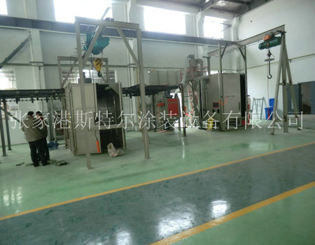 與噴漆房全部采用懸掛線自動通過式自動化程度全部采用連鎖裝置,現